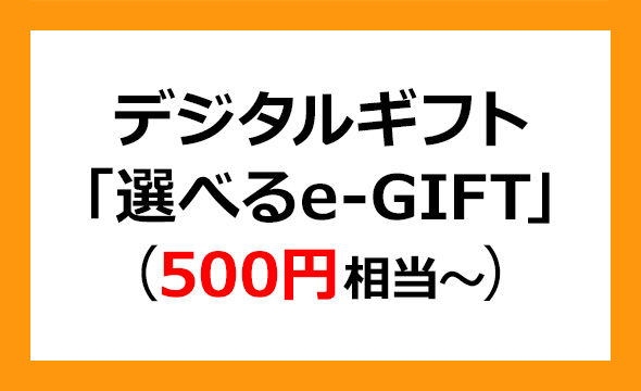 株主優待は、“デジタルギフト「選べる e-GIFT」(500円相当~)”がもらえます。デジタルギフトは、電子マネーやポイントを自由に選べる便利な優待品です。交換先として「Amazonギフトカード」や「PayPayマネーライト」など、利用しやすいものが定番です。